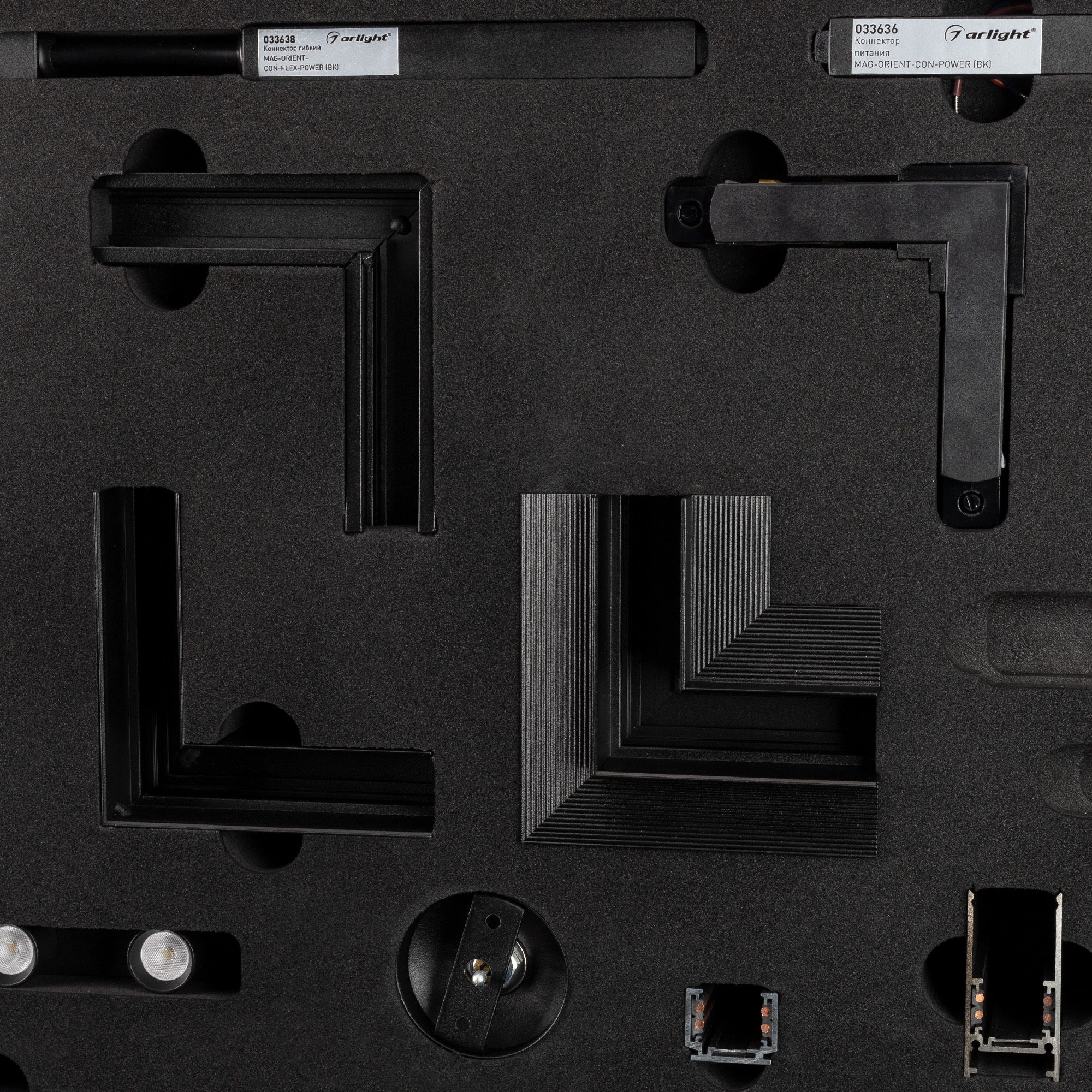 В комплекте демо-кейс, все виды треков, светильники, аксессуары.