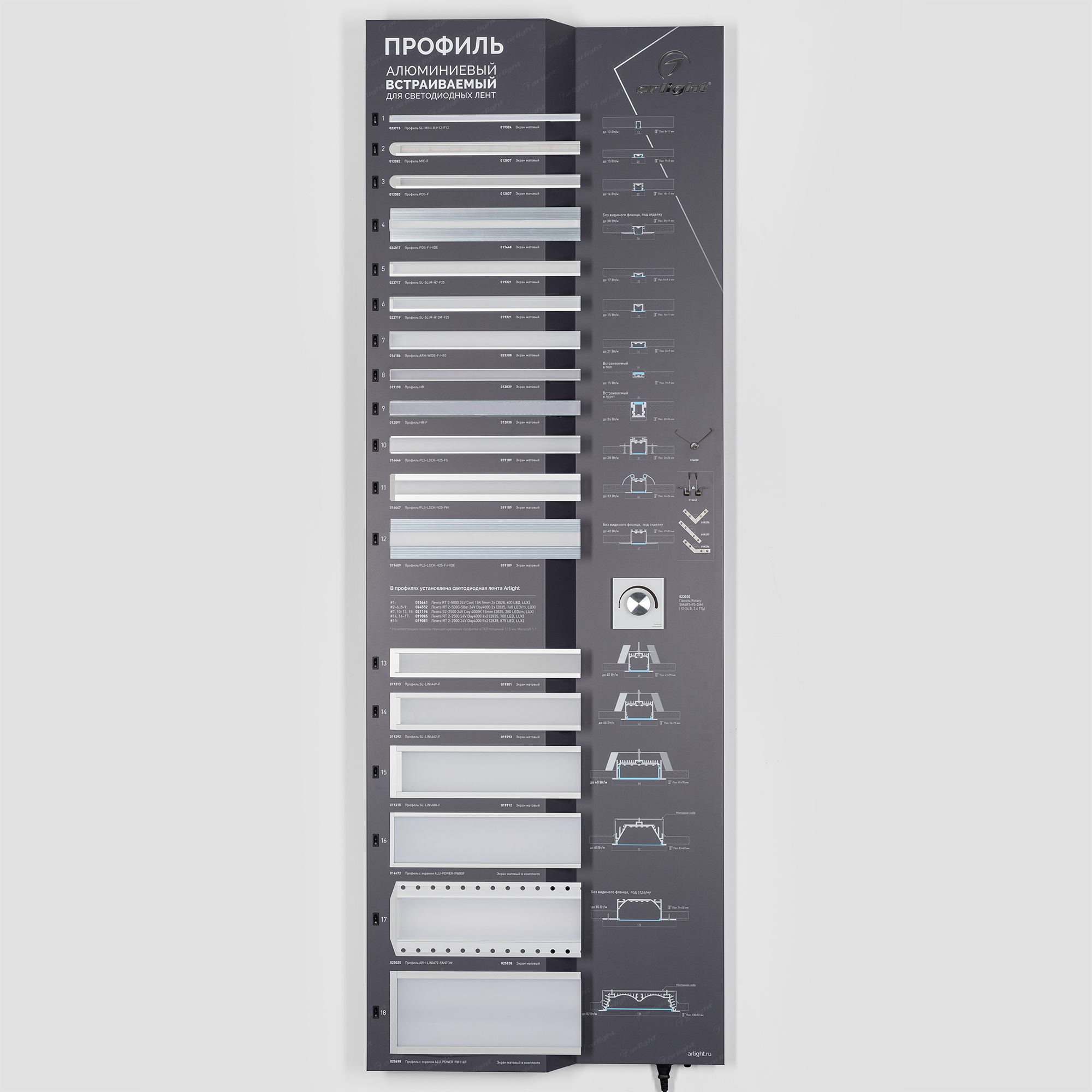 Стенд Алюминиевые Профили Встраиваемые со светодиодной лентой.