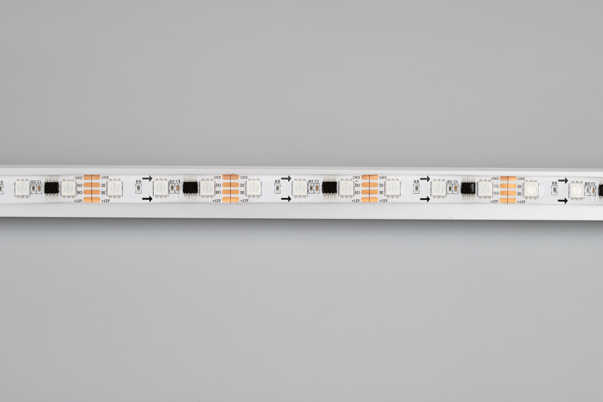 Герметичная многоцветная лента «бегущий огонь» с драйвером 2818 (битый пиксель не влияет на передачу сигнала далее по ленте). Подходит для применения в сухих и влажных помещениях. RGB-светодиоды SMD 5060 (60 шт/м) с силиконовым покрытием, обеспечивающим высокую степень пылевлагозащиты (IP65). Встроенный в ленту контроллер с циклическим автозапуском 300 программ (auto mode), возможно подключение внешнего контроллера. Ширина платы 10 мм, мощность 12 Вт/м, напряжение питания 12 В. Создание рекламных вывесок, оформление витрин, помещений для дискотек, ресторанов, театрализованных шоу, изготовление медиафасадов. Минимальный отрезок 50 мм.